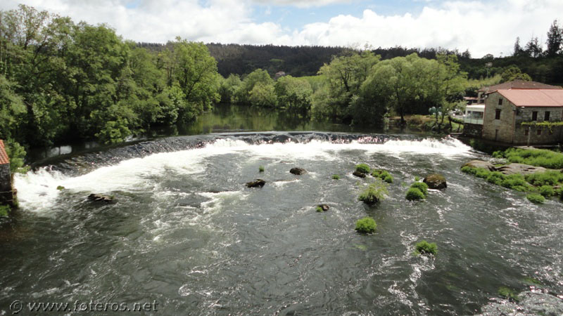 DESDE EL FINAL DEL PUENTE, EL RÍO TAMBRE Y UN BAR CON BUENAS VISTAS