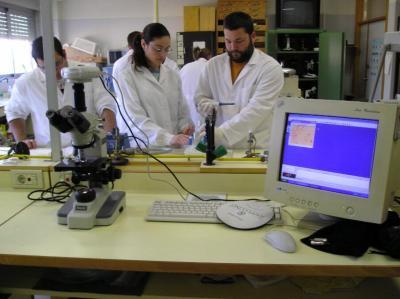 muestras. Microscopio, Cámara unida a él por un tubo